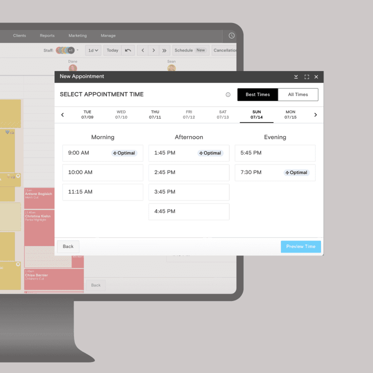 Give clients a modern, simple self-booking experience and optimize your calendar with Precision Scheduling™.
