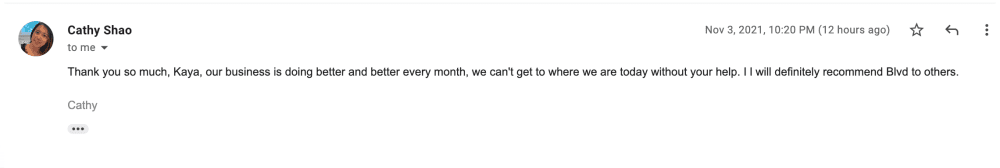 our business is doing better and better every month, we can't get to where we are today without your help. I l will definitely recommend Blvd to others.
